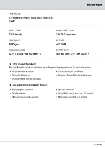 SUPARMI, - and SUMIJATI, SRI (2022) hasil uji plagiasi artikel jurnal "Pelatihan Empati Pada Anak Kelas V SD Antonius 2 Banyumanik Kota Semarang". Universitas katolik soegijapranata.