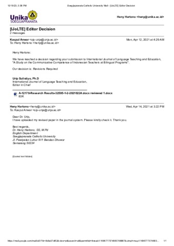 HARTONO, HENY Korespondensi artikel " A Study on the Communicative Competence of Indonesian Teachers at Bilingual Programs". Universitas Katolik Soegijapranata. (Unpublished)