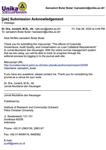 Butar Butar, Sansaloni Bukti Korespondensi: The Effects of Corporate Governance, Audit Quality, and Conservatism on Loan Collateral Requirements. Google Mail. (Unpublished)