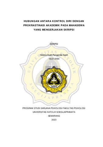 KASIH, HELENA DYAH PANGANDA (2023) HUBUNGAN ANTARA KONTROL DIRI DENGAN PROKRASTINASI AKADEMIK PADA MAHASISWA YANG MENGERJAKAN SKRIPSI. Other thesis, UNIVERSITAS KHATOLIK SOEGIJAPRANATA.