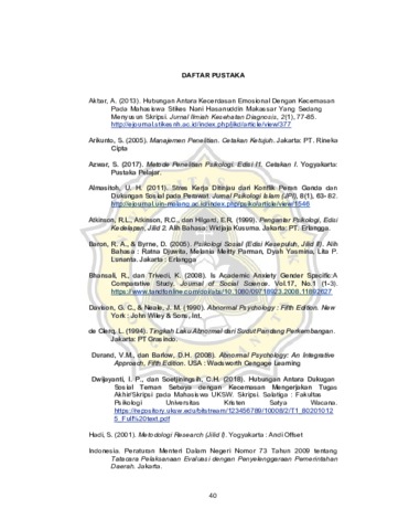 Kecemasan akademik dengan dukungan sosial teman pada mahasiswa yang sedang menyusun skripsi menjadi kekhawatiran umum. Hipotesis yang diajukan adalah “Ada hubungan negatif antara kecemasan akademik dengan dukungan sosial teman pada mahasiswa yang sedang menyususn skripsi. Subjek penelitian adalah mahasiswa Universitas Katholik Soegijapranata. Jumlah keseluruhan subjek penelitian adalah 100 mahasiswa Universitas Katholik Soegijapranata Semarang. Teknik sampling yang digunakan adalah teknik quota sampling. Skala yang digunakan adalah skala kecemasan akademik dan Skala Dukungan Sosial Teman. Alat ukur yang digunakan sudah teruji validitas dan reliabilitasnya. Teknik analisis data yang digunakan adalah korelasi product moment. Hasil penelitian menunjukkan korelasi yang sangat signifikan (rxy= -0,539, p ≤ 0,001), artinya ada hubungan negatif yang sangat signifikan antara kecemasan akademik dengan dukungan sosial teman. Dengan demikian dapat disimpulkan bahwa hipotesis dalam penelitian ini diterima.