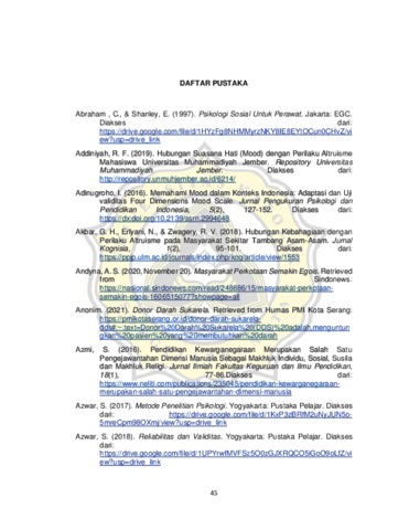 RANOEWIBOWO, GABRIEL PRADIPTA YUDHAHANGGARA (2023) HUBUNGAN SUASANA HATI DENGAN PERILAKU ALTRUISME PADA VOLUNTER PENDONOR DARAH DI PMI KOTA SEMARANG. Other thesis, UNIVERSITAS KHATOLIK SOEGIJAPRANATA.