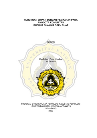 KHODIYAT, KHO EDBERT PUTRA (2023) HUBUNGAN EMPATI DENGAN PEMAAFAN PADA ANGGOTA KOMUNITAS BUDDHA DHAMMA OPEN CHAT. Other thesis, UNIVERSITAS KHATOLIK SOEGIJAPRANATA.