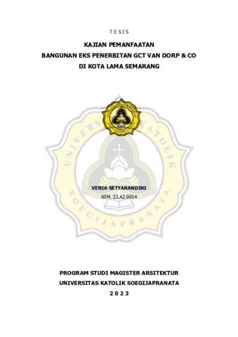 SETYARANDINI, VENIA (2023) KAJIAN PEMANFAATAN BANGUNAN EKS PENERBITAN GCT VAN DORP & CO DI KOTA LAMA SEMARANG. Masters thesis, Universitas Katholik Soegijapranata Semarang.