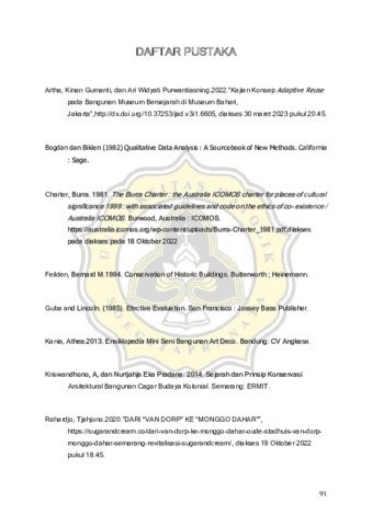 Kota lama adalah salah sebutan untuk suatu kawasan yang berisi bangunan kuno yang ada pada Kota Semarang. Dengan adanya perkembangan masa kawasan ini menjadi salah satu objek wisata Kota Semarang, adapun pertumbuhan fungsi baru terhadap beberapa bangunan, seperti Coffee Shop, hotel, bank dan beberapa jenis lainnya. Konservasi yang dilakukan beberapa bangunan menggunakan adaptasi atau alih fungsi bertujuan untuk melestarikan nilai sejarah serta menggunakan kembali bangunan sesuai kebutuhan masa kini pada kawasan kota lama tanpa meninggalkan nilai - nilai penting konservasi bangunan cagar budaya. Penelitian ini dilakukan pada salah satu bangunan yang memiliki sejarah percetakan yang ada pada Kota Semarang. G.C.T Van Dorp & Co adalah salah satu percetakan pertama yang ada pada kawasan kota lama ini menggunakan bahasa malayu yang dengan mudah dapat dipahami penududuk asli. Untuk melakukan pengamatan penerapa secara adaptasi atau alih fungsi yang dilakukan pada bangunan. Melihat kondisi bangunan dari sebelum adanya konservasi sampai kondisi yang telah terkonservasi pada sebagian bangunan. Mengamati tentang perubahan - perubahan yang terjadi melingkupi bentuk, bahan, dan penggunaan ruang pada bangunan ini. Terhadap keseluruhan eksterior bangunan dan interior yang ada pada bangunan depan yang digunakan starbucks dan lainnya. Metode yang dilakukan pada penelitian ini adalah metode kualitatif studi kasus dengan melakukan tinjauan lapangan pada bangunan eks G.C.T Van Dorp & Co. Selain itu adanya studi literatur mengenai adaptasi dan perubahan yang terjadi pada bangunan agar penelitian ini dapat menghasilkan manfaat adaptasi yang ada pada banguan G.C.T Van Dorp & Co pada Kota Lama Semarang.
