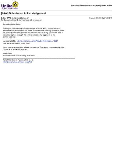 Butar Butar, Sansaloni Korespondensi: The causes and consequences of restatement in indonesia. Google Mail. (Unpublished)
