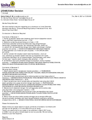 Butar Butar, Sansaloni Bukti Korespondensi: Financial reporting quality and stock price crash risk. Google Mail. (Unpublished)