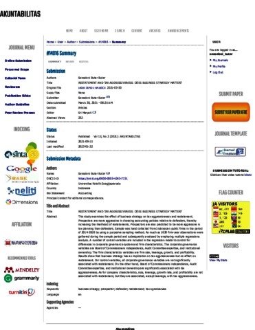 Butar Butar, Sansaloni Bukti Korespondensi: Restatement and Tax Aggresiveness. Universitas Sriwijaya. (Unpublished)