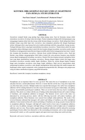 Cahyani, Nan Tiara and Hernawati, Lucia and Eriany, Praharesti KONTROL DIRI, KESEPIAN DAN KECANDUAN SMARTPHONE PADA REMAJA: STUDI LITERATUR. KONTROL DIRI, KESEPIAN DAN KECANDUAN SMARTPHONE PADA REMAJA: STUDI LITERATUR.