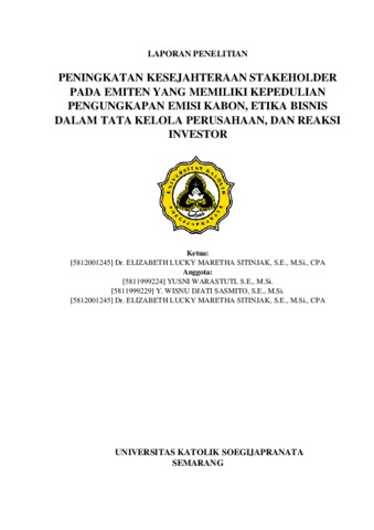 Yusni Warastuti, YW and Elizabeth Lucky Maretha S, Lucky Peningkatan Kesejahteraan Stakeholder pada Emiten yang Memiliki Kepedulian Pengungkapan Emisi Karbon, Etika Bisnis Dalam Tata Kelola Perusahaan dan Reaksi Investor. Project Report. Pusat Pengembangan dan Penelitian Akuntansi. (Unpublished)