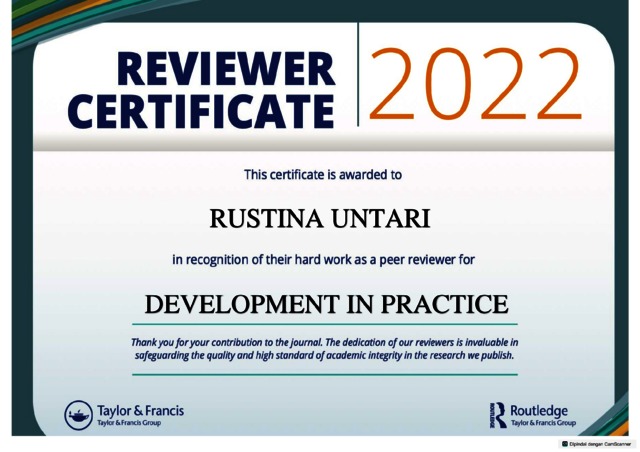 Untari, Rustina (2022) Peer Reviewer for Development in Practice Journal 2022 , Taylor and Francis. Taylor and Francis.
