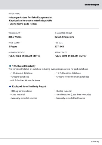 Hubungan Antara Perilaku Escapism dan Kepribadian Neuroticism terhadap Adiksi Online Game pada Remaj.pdf Download (275kB) | Preview |