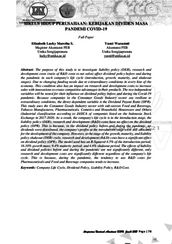 Sitinjak, Elizabeth Lucky Maretha and Yusni Warastuti, YW Abstrak:Siklus Hidup Perusahaan: Kebijakan Dividen di Masa Pandemi Covid-19. Universitas Katolik Soegijapranata. (Unpublished)