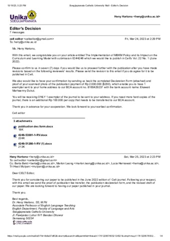 HARTONO, HENY and Berta, Bekti and LEONG, HIRONIMUS and MULYANI, TRI HESTI and Hernawati, Lucia The Implementation of MBKM Policy and Its Impact on the Curriculum and Learning Model. Universitas Katolik Soegijapranata.