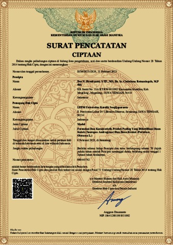 LPPM Universitas Katolik Soegijaparanta (2023) Formulasi Dan Karakteristik Produk Puding Yang Difortifikasi Daun Katuk (Sauropus Androgynus) Dan Daun Krokot (Portulaca Oleracea L.). 000445742.