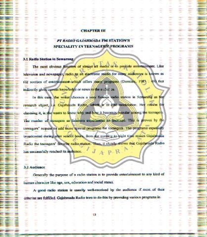 TEENAGERS' RESPONSES TO RADIO GAJAHMADA FM STATION'S PROGRAMS