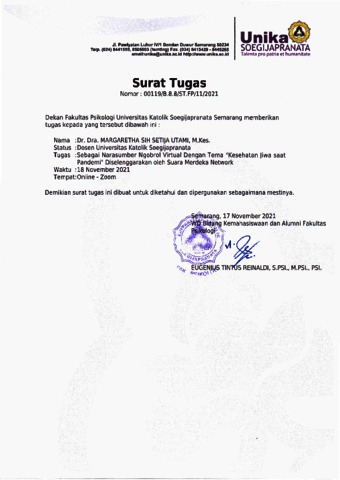 Utami, Margaretha Sih Setija Kesehatan Jiwa Saat Pandemi. Suara Merdeka.