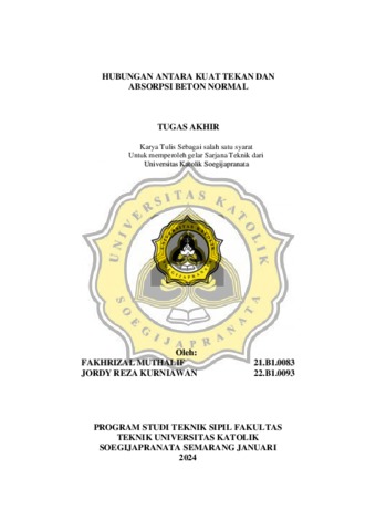 MUTHALIF, FAKHRIZAL and KURNIAWAN, JORDY REZA (2024) HUBUNGAN ANTARA KUAT TEKAN DAN ABSORPSI BETON NORMAL. Skripsi thesis, Universitas Katolik Soegijapranata Semarang.