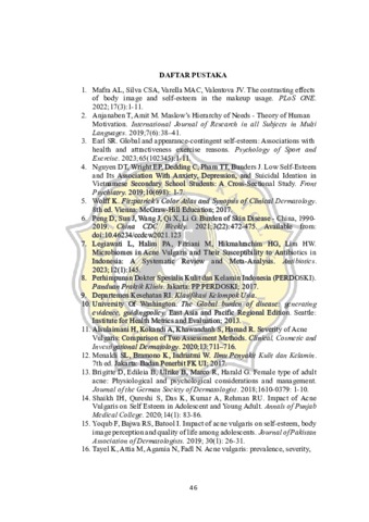 ABSTRAK Latar Belakang: Daya tarik merupakan faktor penting yang mempengaruhi perasaan seseorang, khususnya pada perempuan. Terdapat beberapa faktor yang memicu daya tarik seseorang, salah satunya adalah penampilan secara fisik. Kepuasan dalam penampilan memiliki hubungan yang positif dengan self-esteem, khususnya pada perempuan. Akan tetapi, permasalahan fisik yang sering muncul dan mengganggu penampilan fisik terutama pada wajah yaitu acne vulgaris. Tujuan: Mengetahui hubungan derajat keparahan acne vulgaris dengan self-esteem pada pasien perempuan remaja akhir di Klinik Cantiq DRD Jakarta. Metode: Penelitian ini merupakan penelitian observasional analitik dengan desain penelitian cross-sectional. Penelitian dilakukan dengan melihat derajat keparahan acne vulgaris dan melakukan pengukuran dengan memberikan kuesioner kepada subjek penelitian kemudian melakukan skoring nilai self-esteem. Pengambilan sampel dilakukan dengan teknik purposive sampling dan analisis statistik menggunakan uji Spearman. Hasil: Adanya korelasi yang bermakna antara derajat keparahan acne vulgaris dengan self-esteem (p=0,000). Hubungan antara derajat keparahan acne vulgaris dengan self-esteem memiliki kekuatan korelasi kuat (r=-0,602) dengan arah hubungan yang tidak searah antar kedua variabel. Kesimpulan: Terdapat hubungan antara derajat keparahan acne vulgaris dengan self-esteem pada subjek penelitian perempuan usia remaja akhir di Klinik Cantiq DRD Jakarta. Kata kunci: Derajat keparahan acne vulgaris, self-esteem, perempuan remaja akhir.