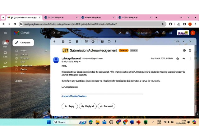 Diasti, Krismalita and MURNIATI, CECILIA TITIEK and HARTONO, HENY Bukti Korespondensi_The implementation of KWL strategy in EFL students' reading comprehension. Universitas Kristen Indonesia.