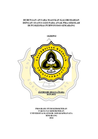 TIARA, JANNESSIE SELLYA (2024) HUBUNGAN ANTARA MASUKAN KALORI HARIAN DENGAN STATUS GIZI PADA ANAK PRA-SEKOLAH DI PUSKESMAS PURWOYOSO SEMARANG. Skripsi thesis, UNIVERSITAS KATOLIK SOEGIJAPRANATA.