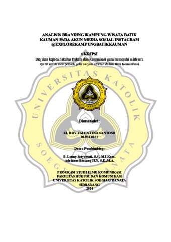 SANTOSO, EL ROY VALENTINO (2024) ANALISIS BRANDING KAMPUNG WISATA BATIK KAUMAN PADA AKUN MEDIA SOSIAL INSTAGRAM @EXPLOREKAMPUNGBATIKKAUMAN. Skripsi thesis, UNIVERSITAS KATOLIK SOEGIJAPRANATA.
