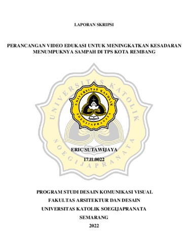 SUTAWIJAYA, ERIC (2023) PERANCANGAN VIDEO EDUKASI UNTUK MENINGKATKAN KESADARAN MENUMPUKNYA SAMPAH DI TPS KOTA REMBANG. Skripsi thesis, UNIVERSITAS KATOLIK SOEGIJAPRANATA.