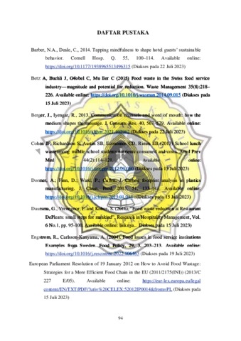 ABSTRAK Semakin meningkatnya populasi masyarakat, tentu akan mempengaruhi penumpukan sampah yang dihasilkan, terutama penumpukan sampah makanan. Isu mengenai food waste dan food loss perlu untuk ditingkatkan agar bisa menciptakan adanya perubahan serta mengurangi jumlah dari food waste ataupun food loss yang ada di Indonesia. Penelitian ini bertujuan untuk menghimpun berbagai faktor yang muncul dari adanya food waste yaitu menganalisa perilaku konsumen pada sebuah acara dan mencari tahu upaya pemilik katering dalam menyikapi food waste. Penelitian dilaksanakan dengan metode kualitatif melalui wawancara yang mendalam agar mendapatkan data yang cukup dengan narasumber yaitu manager dan juga pegawai unit pelaksana Bagong katering yang berlokasi di Jalan Purwoyoso Barat, Semarang yang dilaksanakan selama 2 bulan. Berdasarkan hasil penelitian yang dilakukan di Katering Bagong, tahapan yang memiliki risiko timbulan limbah tertinggi menurut manager adalah Perencanaan Menu, Persiapan Bahan Baku, dan Pengiriman dengan bobot 3; diikuti oleh tahapan Pembelian Bahan Baku (2,6) dan Penyajian (2,4). Pada tingkat unit pelaksana tahapan yang memiliki risiko timbulan limbah tertinggi adalah Pengolahan (3,0); diikuti berturut-turut oleh Persiapan Bahan Baku (2,5), dan Pembelian (2,4) serta Penyajian (2,4). Dari hasil tersebut juga ditemukan bahwa manager mengetahui timbulan limbah makanan dari proses awal hingga sampai pada pelanggan. Program penanganan yang dilakukan oleh Katering Bagong adalah dengan mendistribusikan kembali sisa makanan kepada lembaga sosial dan mengemas sisa makanan tersebut dalam kemasan yang sudah disediakan oleh Katering. Namun pada pengolahan, Katering Bagong tidak menghasilkan sisa makanan karena tidak pernah terjadi kesalahan dalam memasak sehingga menghasilkan limbah yang banyak. Kata Kunci: food waste, food loss, katering