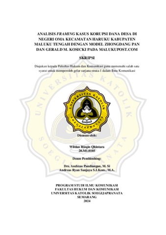 QHINTARA, WILDAN RIZQIN (2024) ANALISIS FRAMING KASUS KORUPSI DANA DESA DI NEGERI OMA KECAMATAN HARUKU KABUPATEN MALUKU TENGAH DENGAN MODEL ZHONGDANG PAN DAN GERALD M. KOSICKI PADA MALUKUPOST.COM. Skripsi thesis, UNIVERSITAS KATOLIK SOEGIJAPRANATA.