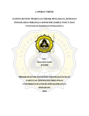 YUNITA, HANA LINDA (2024) SCOPING REVIEW: PEMETAAN TEKNIK PENGADAAN, JENIS DAN PENGOLAHAN SERANGGA KONSUMSI (EDIBLE INSECT) DAN TANTANGAN KEMANAN PANGANNYA. Masters thesis, UNIVERSITAS KATOLIK SOEGIJAPRANATA.