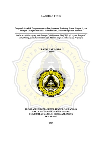 HARYANTO, LANNY (2024) PENGARUH KONDISI PENGEMASAN DAN PENYIMPANAN TERHADAP UMUR SIMPAN AYAM REMPAH DITINJAU DARI SIFAT FISIKOKIMIAWI, MIKROBIOLOGIS DAN SENSORIS. Masters thesis, UNIVERSITAS KATOLIK SOEGIJAPRANATA.