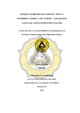 BRANDON, AURELIUS (2023) EFFORTS OF PRESERVING EARTH IN "WHAT A WONDERFUL WORLD" AND "EARTH": A FIGURATIVE LANGUAGE AND ECOCRITICISM ANALYSIS. Skripsi thesis, UNIVERSITAS KATOLIK SOEGIJAPRANATA.