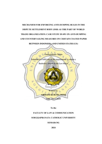 DEWI, ARDIANI KUSUMA (2024) MECHANISM FOR ENFORCING ANTI-DUMPING RULES IN THE DISPUTE SETTLEMENT BODY (DSB) AS THE PART OF WORLD TRADE ORGANIZATION: CASE STUDY DS 491 ON ANTI-DUMPING AND COUNTERVAILING MEASURES ON CERTAIN COATED PAPER BETWEEN INDONESIA AND UNITED STATES (US). Skripsi thesis, UNIVERSITAS KATOLIK SOEGIJAPRANATA.