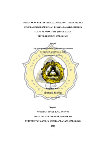 PASTIKA, LUDWINA (2023) PENEGAKAN HUKUM TERHADAP PELAKU TINDAK PIDANA KEKERASAN DALAM RUMAH TANGGA YANG DILAKUKAN SUAMI KEPADA ISTRI (STUDI KASUS DI POLRESTABES SEMARANG). Skripsi thesis, UNIVERSITAS KATOLIK SOEGIJAPRANATA.