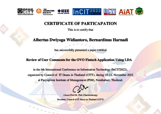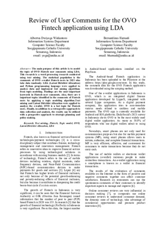 Harnadi, Bernardinus (IEEE 2022) Review of User Comments for the OVO Fintech application using LDA. 2022 6th International Conference on Information Technology (InCIT). ISSN 978-1-6654-8912-6