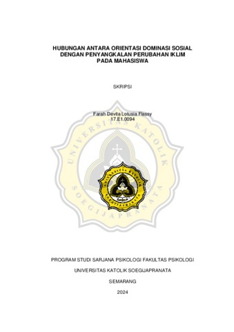 FLASSY, FARAH DEVITA LOTUSIA (2024) HUBUNGAN ANTARA ORIENTASI DOMINASI SOSIAL DENGAN PENYANGKALAN PERUBAHAN IKLIM PADA MAHASISWA. Skripsi thesis, UNIVERSITAS KATOLIK SOEGIJAPRANATA.