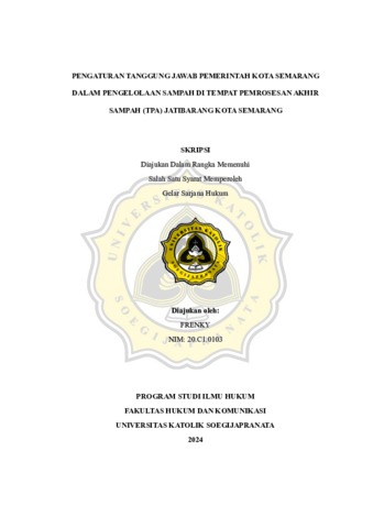 FRENKY, FRENKY (2024) PENGATURAN TANGGUNG JAWAB PEMERINTAH KOTA SEMARANG DALAM PENGELOLAAN SAMPAH DI TEMPAT PEMROSESAN AKHIR SAMPAH (TPA) JATIBARANG KOTA SEMARANG. Skripsi thesis, UNIVERSITAS KATOLIK SOEGIJAPRANATA.