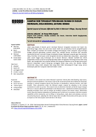 Ardiyanto, Antonius and Saputra, Go Yesaya Wisly (2024) DAMPAK ROB TERHADAP PERUBAHAN RUMAH DI DUSUN MOROSARI, DESA BEDONO, SAYUNG DEMAK. AGORA : Jurnal Penelitian dan Karya Ilmiah Arsitektur Usakti, 22 (1). pp. 82-106. ISSN 2622-500X