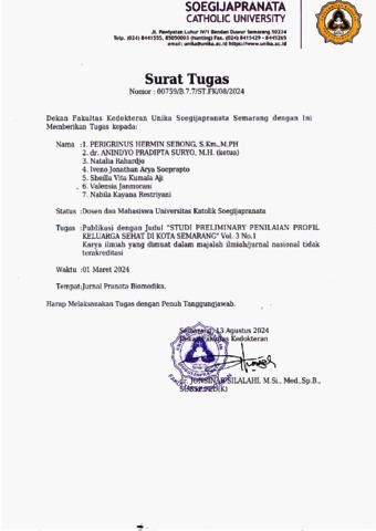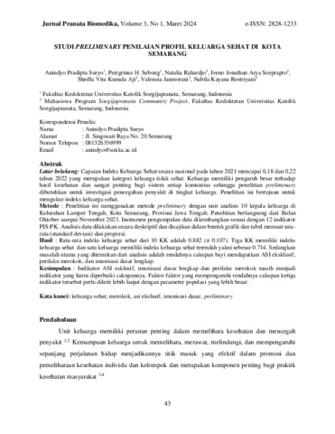 Suryo, Anindyo Pradipta and sebong, perigrinus hermin (2024) STUDI PRELIMINARY PENILAIAN PROFIL KELUARGA SEHAT DI KOTA SEMARANG. JURNAL PRANATA BIOMEDIKA. ISSN 2828-1233