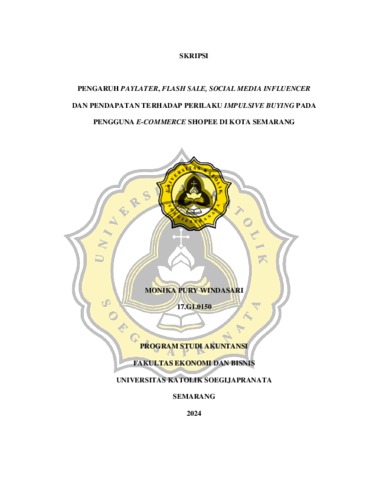WINDASARI, MONIKA PURY (2024) PENGARUH PAYLATER, FLASH SALE, SOCIAL MEDIA INFLUENCER DAN PENDAPATAN TERHADAP PERILAKU IMPULSIVE BUYING PADA PENGGUNA E-COMMERCE SHOPEE DI KOTA SEMARANG. S1 thesis, UNIVERSITAS KATHOLIK SOEGIJAPRANATA.