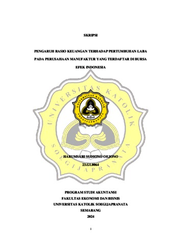 OEJONO, HARUMSARI SUDIONO (2024) PENGARUH RASIO KEUANGAN TERHADAP PERTUMBUHAN LABA PADA PERUSAHAAN MANUFAKTUR YANG TERDAFTAR DI BURSA EFEK INDONESIA. S1 thesis, UNIVERSITAS KATOLIK SOEGIJAPRANATA.