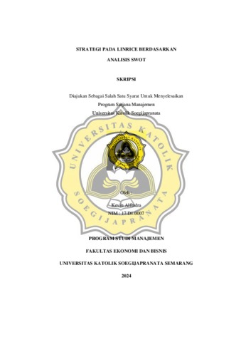 ALFINDRA, KEVIN (2024) STRATEGI PADA LINRICE BERDASARKAN ANALISIS SWOT. S1 thesis, UNIVERSITAS KATOLIK SOEGIJAPRANATA.