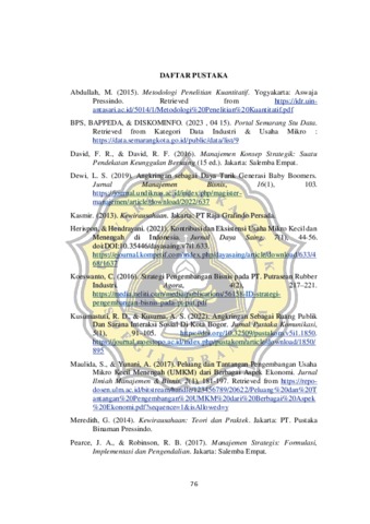 Permasalahan yang timbul dalam penelitian ini adalah penurunan omset angkringan Bajra yang diakibatkan dari adanya persaingan dengan angkringanangkringan lain di sekitarnya terutama angkringan Semar, dimana angkringan Bajra memiliki kelemahan dibandingkan dengan pesaingnya tersebut. Tujuan dilakukannya penelitian ini adalah untuk merumuskan strategi pengembangan angkringan Bajra dengan menggunakan analisis SWOT untuk dapat bersaing dengan usaha angkringan lainnya. Perumusan alternatif strategi pengembangan bisnis Davin Men’s Underwear dilakukan dengan menggunakan metode analisis Matriks SWOT. Sampel dalam penelitian ini adalah 1 orang pemilik, dan 2 orang karyawan Davin Men’s Underwear, 30 orang konsumen serta observasi langsung ke obyek penelitian. Berdasarkan matriks SWOT akan menghasilkan strategi memanfaatkan aplikasi digital penjualan online untuk memberikan promosi harga (Strategi S-O), memanfaatkan sosial media untuk memperkenalkan nama Angkringan Bajra (Strategi S-O), membuka angkringan Bajra di lokasi lain yang lebih luas (Strategi S-O), menyediakan wifi untuk konsumen (Strategi W-O), menambah tikar (Strategi W-O), menambah terpal untuk dapat melindungi konsumen dan makanan dari hujan (Strategi S-T), menambah varian produk gorengan (Strategi W-T)..