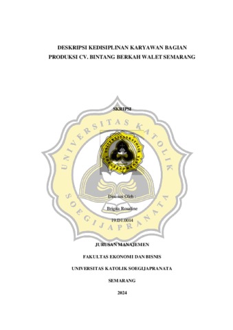 ROSALINE, BRIGITA (2024) DESKRIPSI KEDISIPLINAN KARYAWAN BAGIAN PRODUKSI CV. BINTANG BERKAH WALET SEMARANG. S1 thesis, UNIVERSITAS KATOLIK SOEGIJAPRANATA.