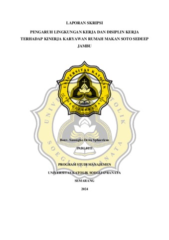 SPHAERICUS, BONV. SASONGKO DEWA (2024) PENGARUH LINGKUNGAN KERJA DAN DISIPLIN KERJA TERHADAP KINERJA KARYAWAN RUMAH MAKAN SOTO SEDEEP JAMBU. S1 thesis, UNIVERSITAS KATOLIK SOEGIJAPRANATA.