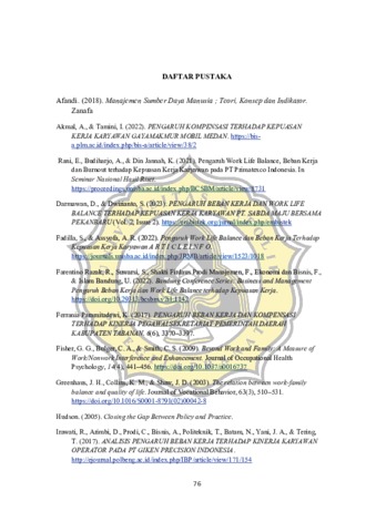 Work life balance adalah bagian dari upaya yang dilaksanakan oleh seorang individu dalam rangka menyeimbangkan dua peran atau bahkan lebih yang mencangkup dari pemakaian waktu, energi, pencapaian dalam tujuan, dan tekanan didalam pekerjaan serta kehidupan pribadi ataupun hal-hal yang terjadi didalamnya. Beban kerja merupakan sebuah tugas yang perusahaan berikan kepada seluruh karyawannya yang dapat diselesaikan didalam kurun waktu yang telah ditentukan. Kepuasan kerja merupakan bagian dari efektifitas ataupun reaksi secara emosional terhadap bermacam aspek dari pekerjaan dengan kaitannya mengenai perasaan menyenangkan ataupun sebaliknya pekerjaan yang karyawan lakukan. Tujuan dari penilitian ini adalah untuk mendeskripsikan work life balance, beban kerja, dan kepuasa kerja serta mengetahui pengaruh signifikan work life balance dan beban kerja terhadap kepuasan kerja karyawan Perumda Air Minum Tirta Moedal Kota Semarang. Jenis penelitian ini adalah penelitian kuantitatif. Teknik pengumpulan data dari penelitian ini dengan menggunakan probability sampling dengan teknik simple random sampling (menggunakan teknik undian) dengan total sampel 65 orang. Menggunakan teknik analisis deskriptif dan inferensial regresi linear berganda dengan pengujian hipotesis menggunakan Uji-t dan Uji-f. Kesimpulan dari hasil penelitian ini adalah Work Life Balance dan Beban Kerja memiliki pengaruh positif dan signifikan terhadap Kepuasan Kerja Karyawan Perumda Air Minum Tirta Moedal Kota Semarang.