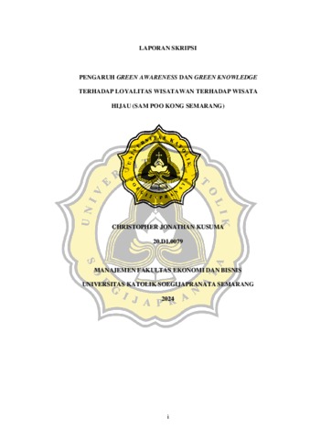 KUSUMA, CHRISTOPHER JONATHAN (2024) PENGARUH GREEN AWARENESS DAN GREEN KNOWLEDGE TERHADAP LOYALITAS WISATAWAN TERHADAP WISATA HIJAU (SAM POO KONG SEMARANG). S1 thesis, UNIVERSITAS KATOLIK SOEGIJAPRANATA.