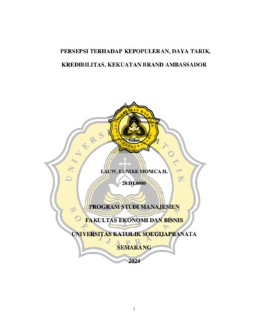 HENDRAWAN, LAUW, EUNIKE MONICA (2024) PERSEPSI TERHADAP KEPOPULERAN, DAYA TARIK, KREDIBILITAS, KEKUATAN BRAND AMBASSADOR. S1 thesis, UNIVERSITAS KATOLIK SOEGIJAPRANATA.