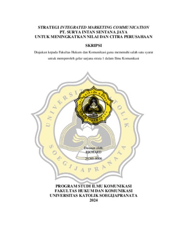 RICHARD, RICHARD (2024) STRATEGI INTEGRATED MARKETING COMMUNICATION PT. SURYA INTAN SENTANA JAYA UNTUK MENINGKATKAN NILAI DAN CITRA PERUSAHAAN. S1 thesis, UNIVERSITAS KATOLIK SOEGIJAPRANATA.