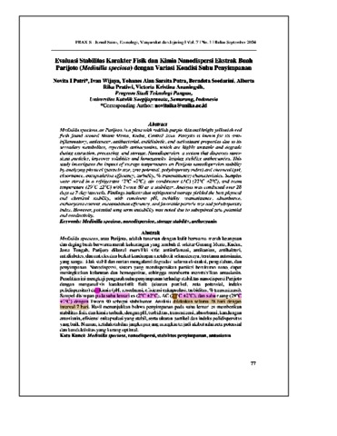 PUTRI, NOVITA IKA Similarity check - Evaluasi Stabilitas Karakter Fisik dan Kimia Nanodispersi Ekstrak Buah Parijoto (Medinilla speciosa) dengan Variasi Kondisi Suhu Penyimpanan. Universitas Katolik Soegijapranata.
